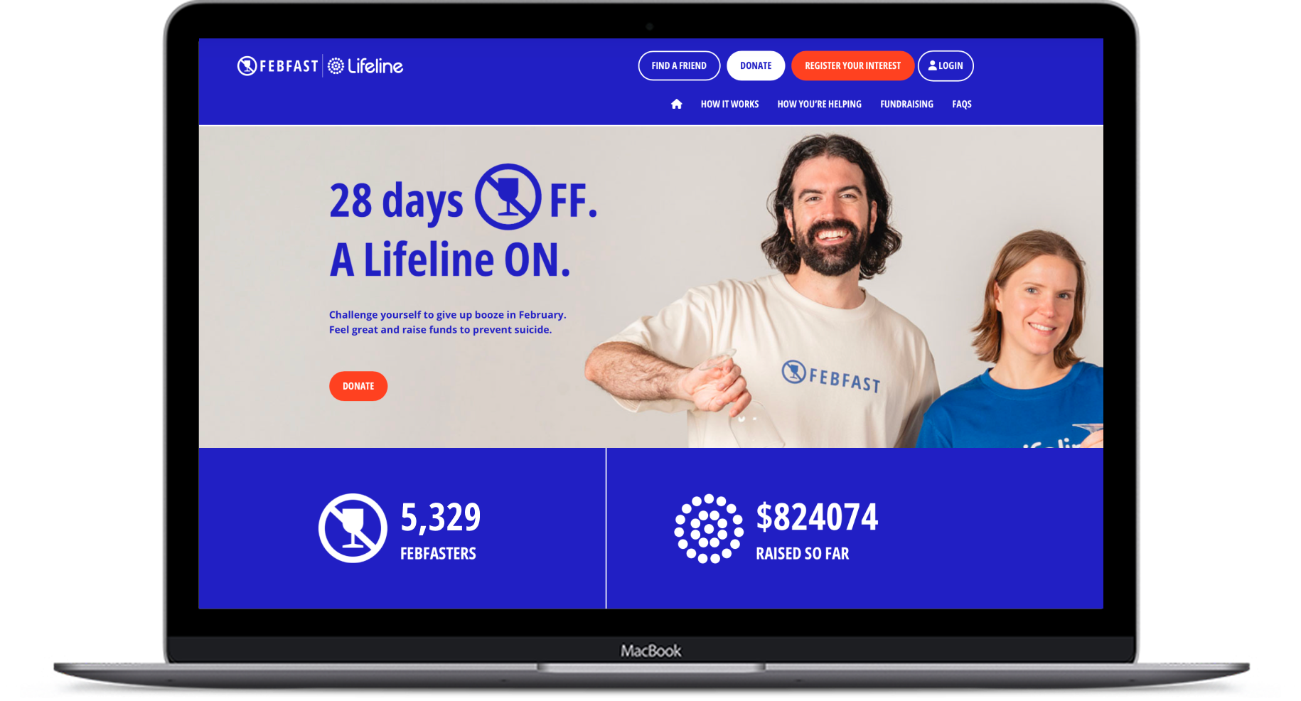 Febfast is one of Australia’s longest-running fundraising campaigns. It has 19 years of participants, tradition, and trust, built for nearly two decades under Youth Support and Advocacy Services (YSAS). But in 2026, Lifeline took full ownership after a joint year testing the waters. They inherited the campaign and, with the creative and strategic support of Donor Republic, rebuilt it from the ground up: new brand identity by Thinkerbell, complete platform migration to Funraisin, and a campaign strategy that invited people to engage deeply, not just donate casually.