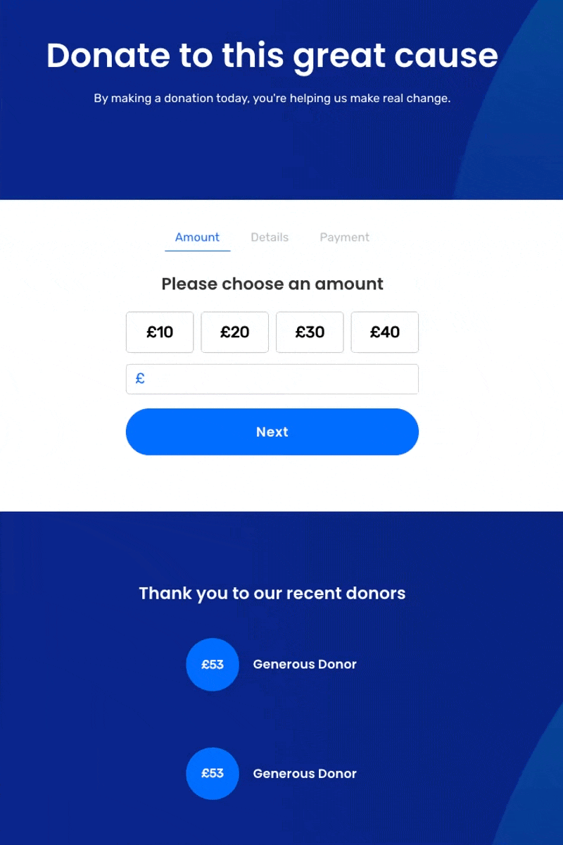 This version builds on the basics by introducing suggested donation amounts—helping donors make quicker, more confident choices.
