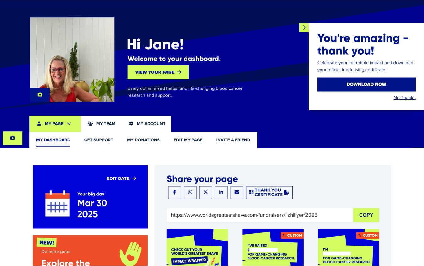 When you’re taking on something as bold as shaving your head, having the right support makes all the difference. The World’s Greatest Shave dashboard was built to be just that—an encouraging companion every step of the way.
