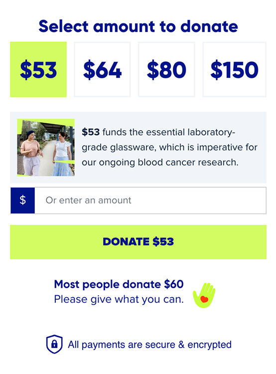 There’s even a suggested ‘Most people give $60’, which the team said has increased the average gift size by 5.5%.