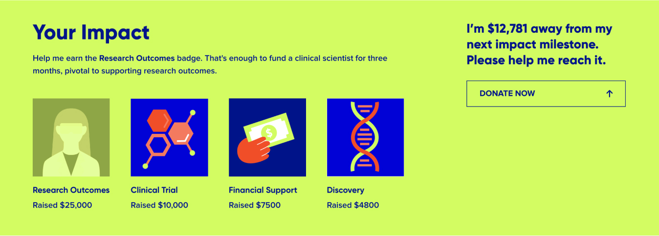 Badges help show exactly what impact a fundraiser is having, and motivates them to keep fundraising to earn those extra badges.